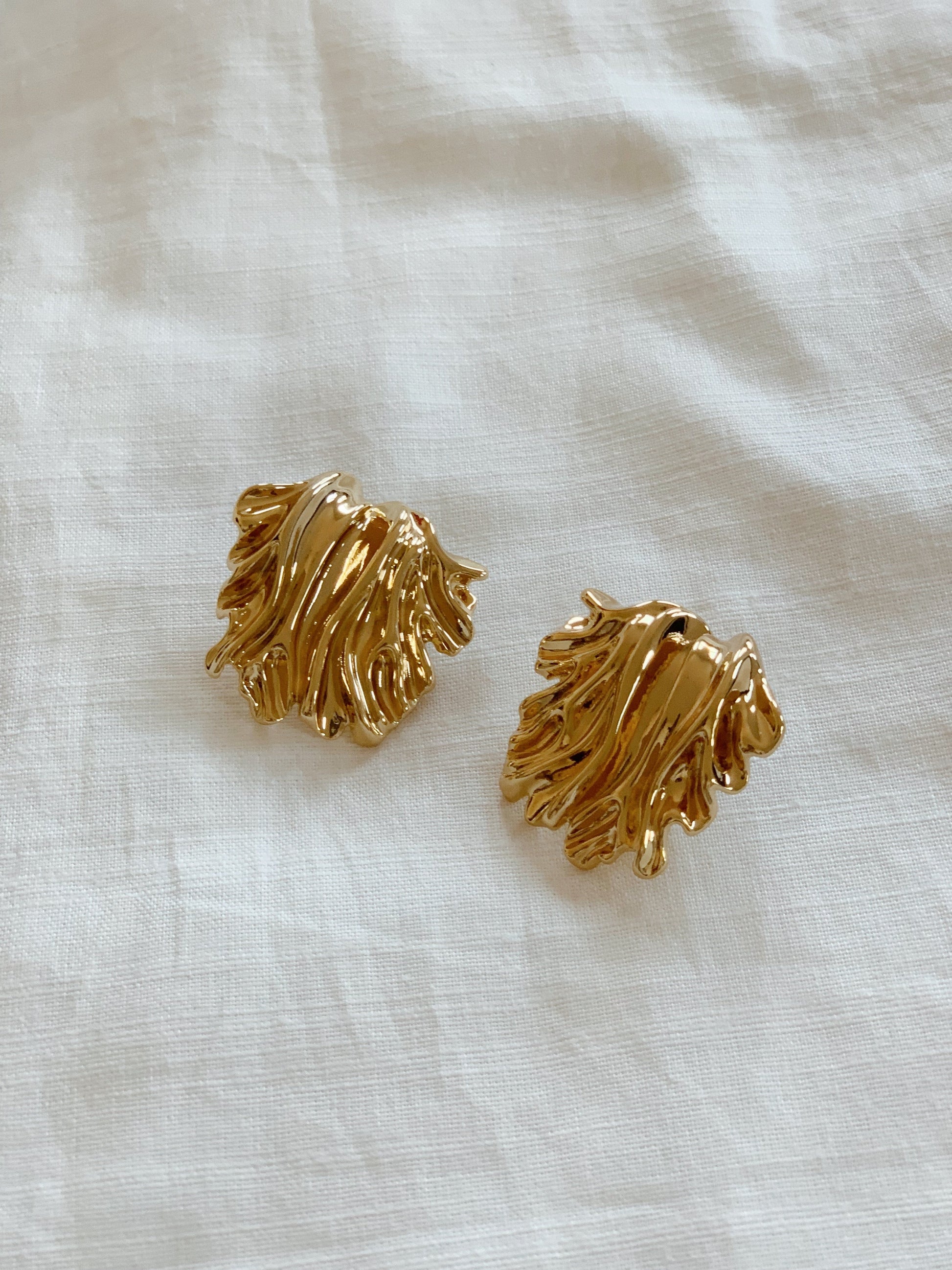 The Amalia Luxe Earrings by Kitsense are crafted from titanium steel and feature a rippled gold effect. This luxe statement style elevates any look. Style with a sleek up-do for a super glam look.