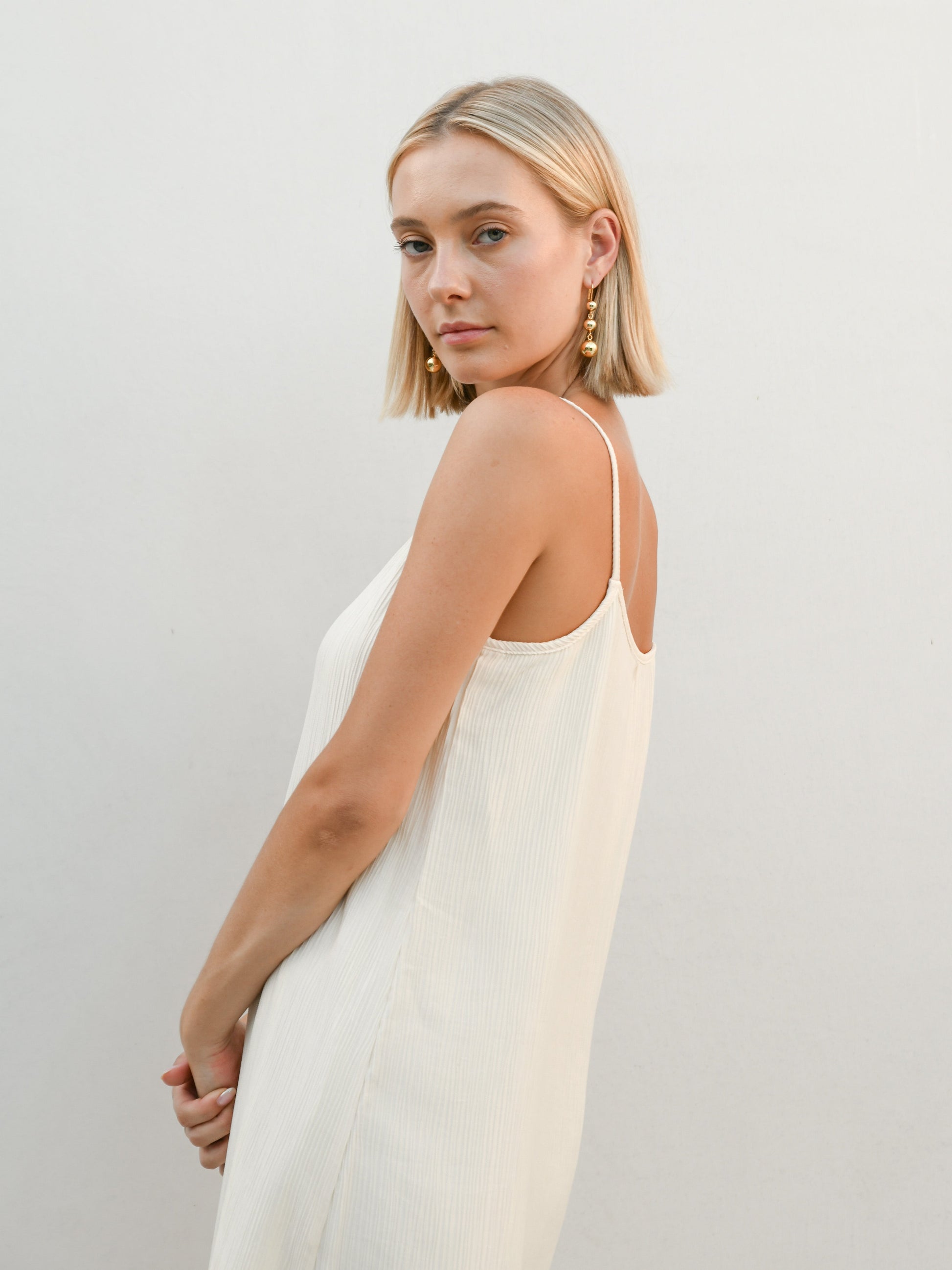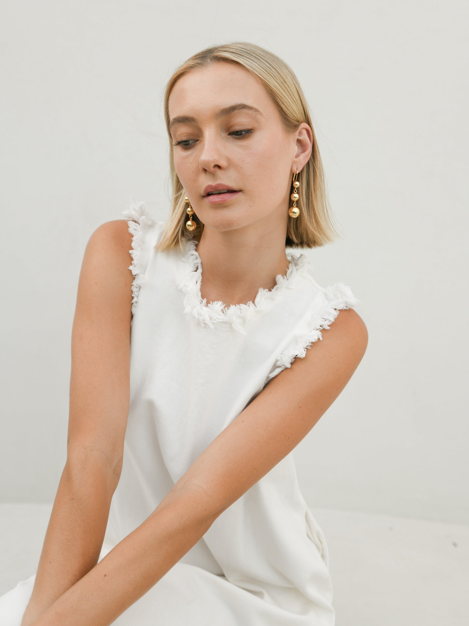 The Cere Luxe Trio Ball Earrings by Kitsense features an elegant cascading ball design, crafted from titanium steel this style pairs back beautifully with a chic slick low pony tail or bun to elevate any look.