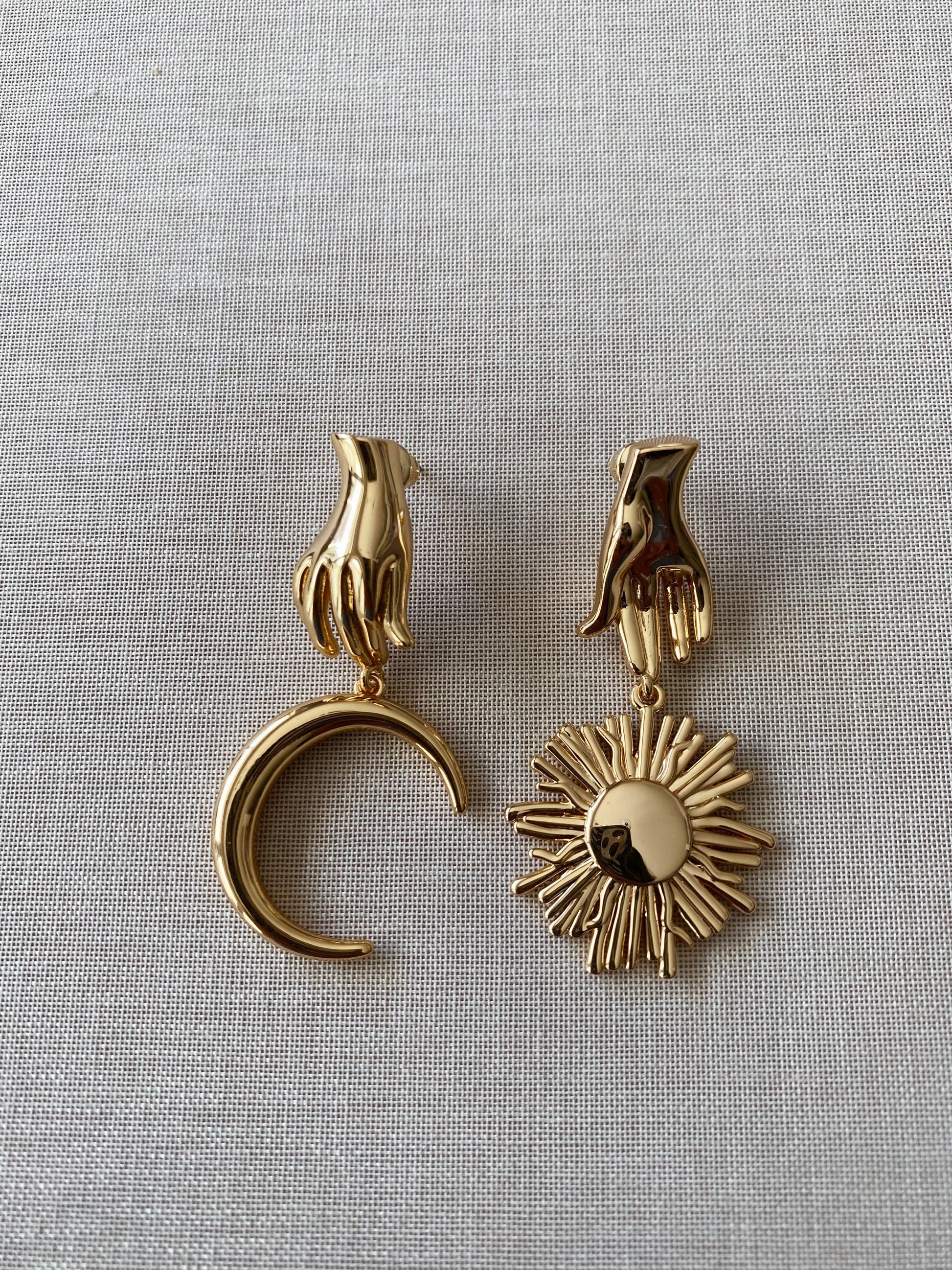 The Day to Night Luxe Earrings by Kitsense are a part of the Luxe Edit Collection 0.5. These earrings feature a moon & sun detail.