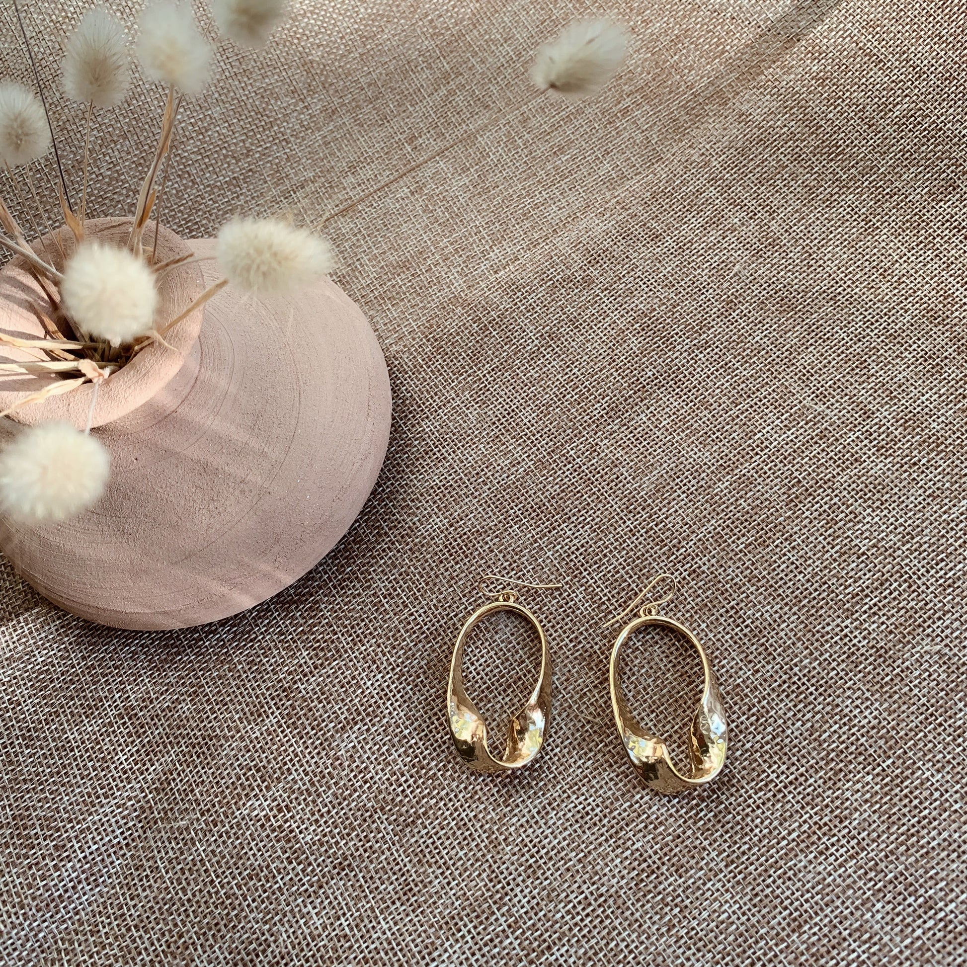 The Dolly Statement Earrings by Kitsense feature an elegant warped oval shape. This style is sure to elevate any look and create a lasting statement.