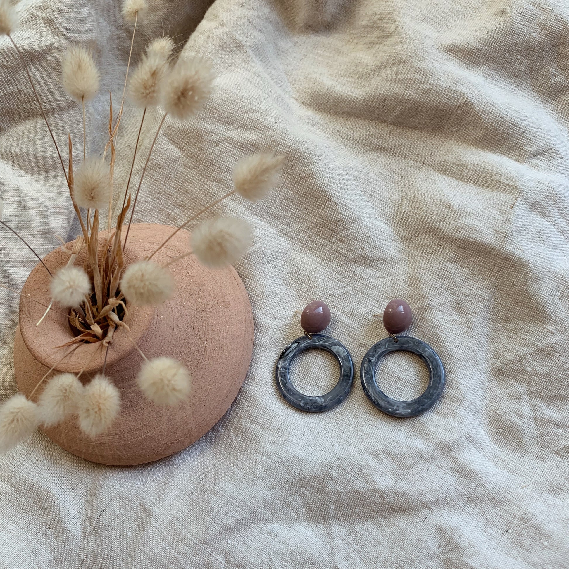 The Effy Acetate Earrings by Kitsense are apart of the Acetate Collection 0.3. This style features a dropped down hollow circle shape in a unique sea-foam colour way. Wear with a white T-shirt and blue denim for the perfect casual chic everyday look.