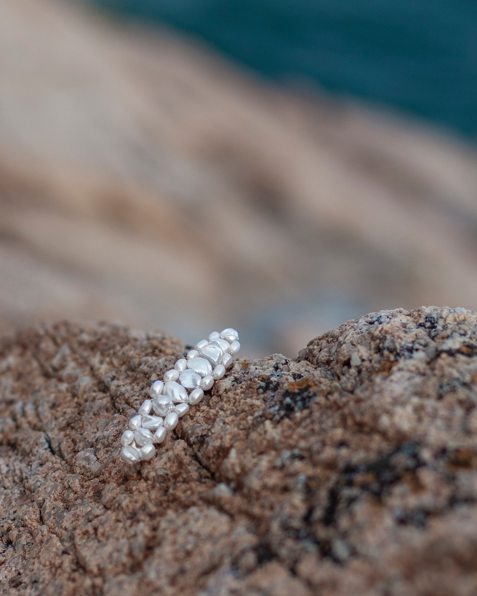 A gold plated hair slide line with two type of freshwater pearls. The ISA hair slide is a must, to perfect your look.