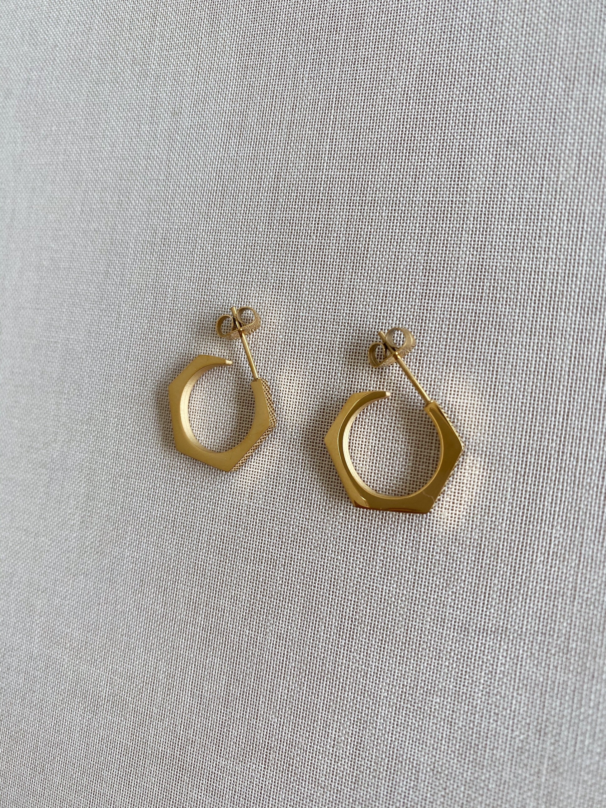 The Miley Pentagon Luxe Earrings by Kitsense are crafted from titanium steel and feature a pentagon hoop detail giving a twist to your classic hoop earring.