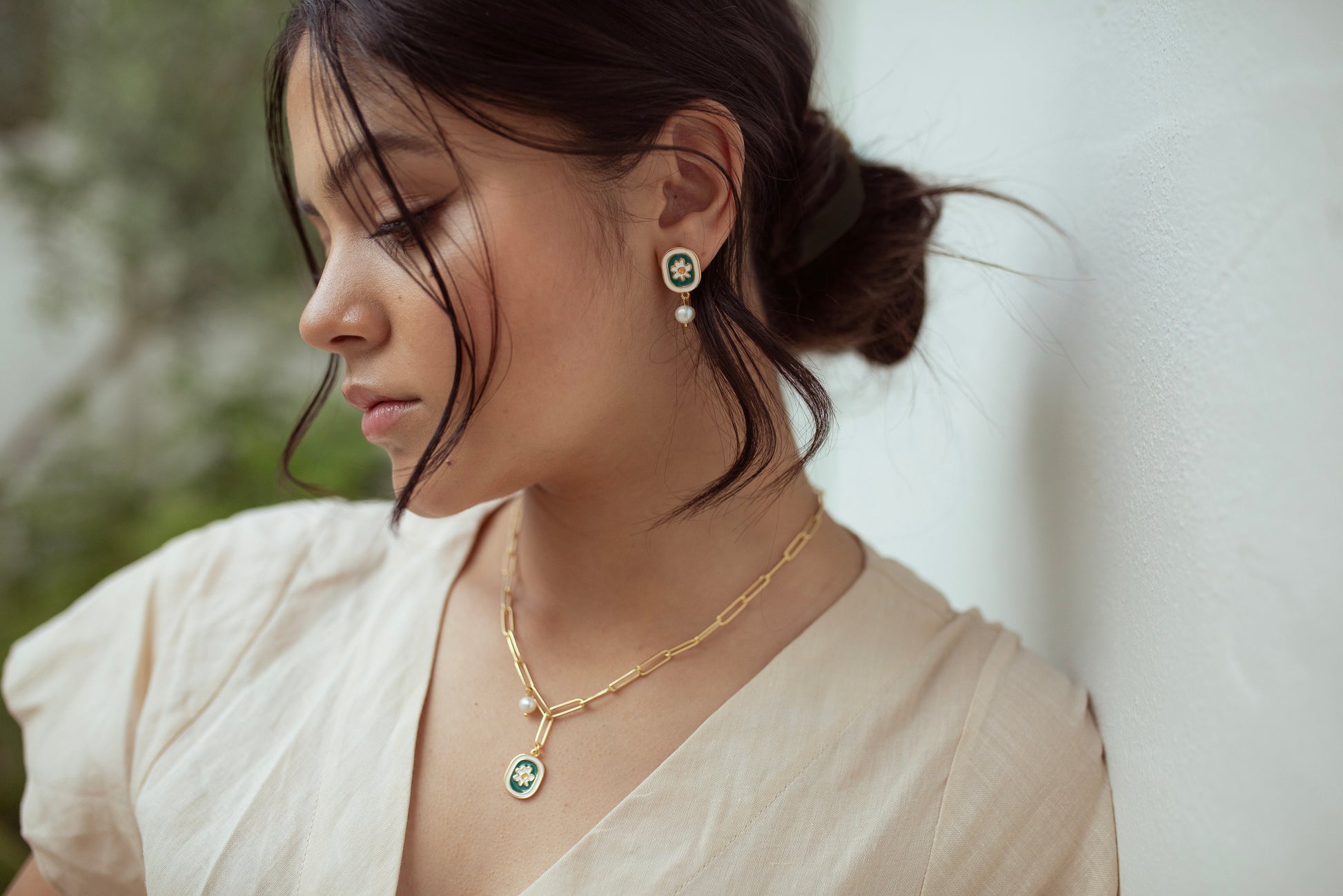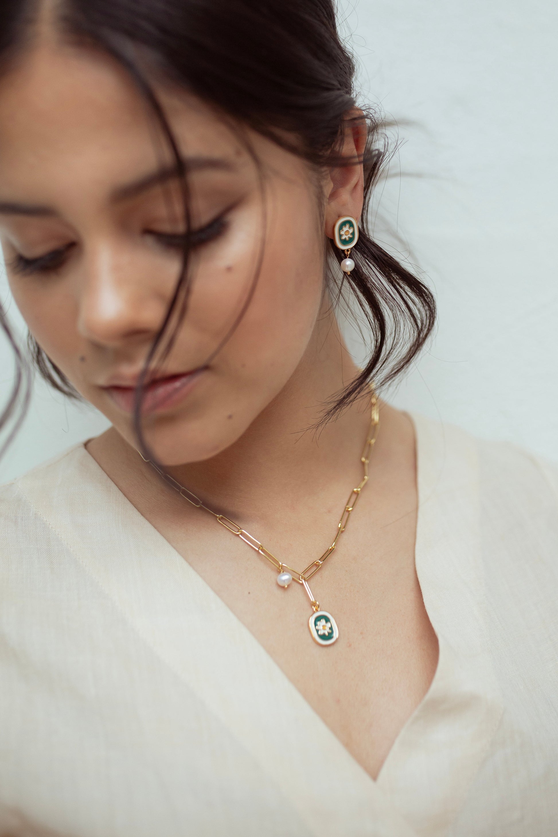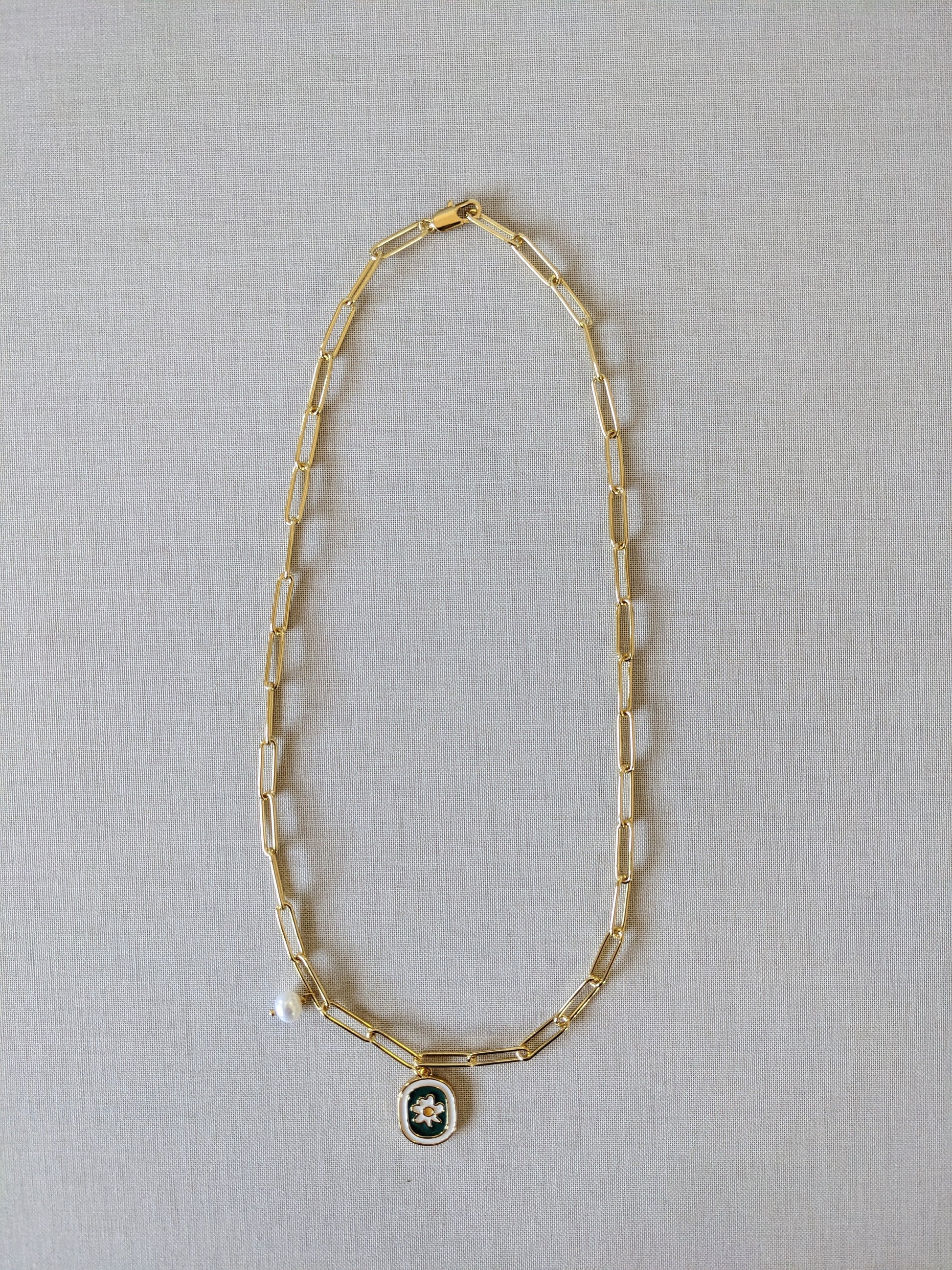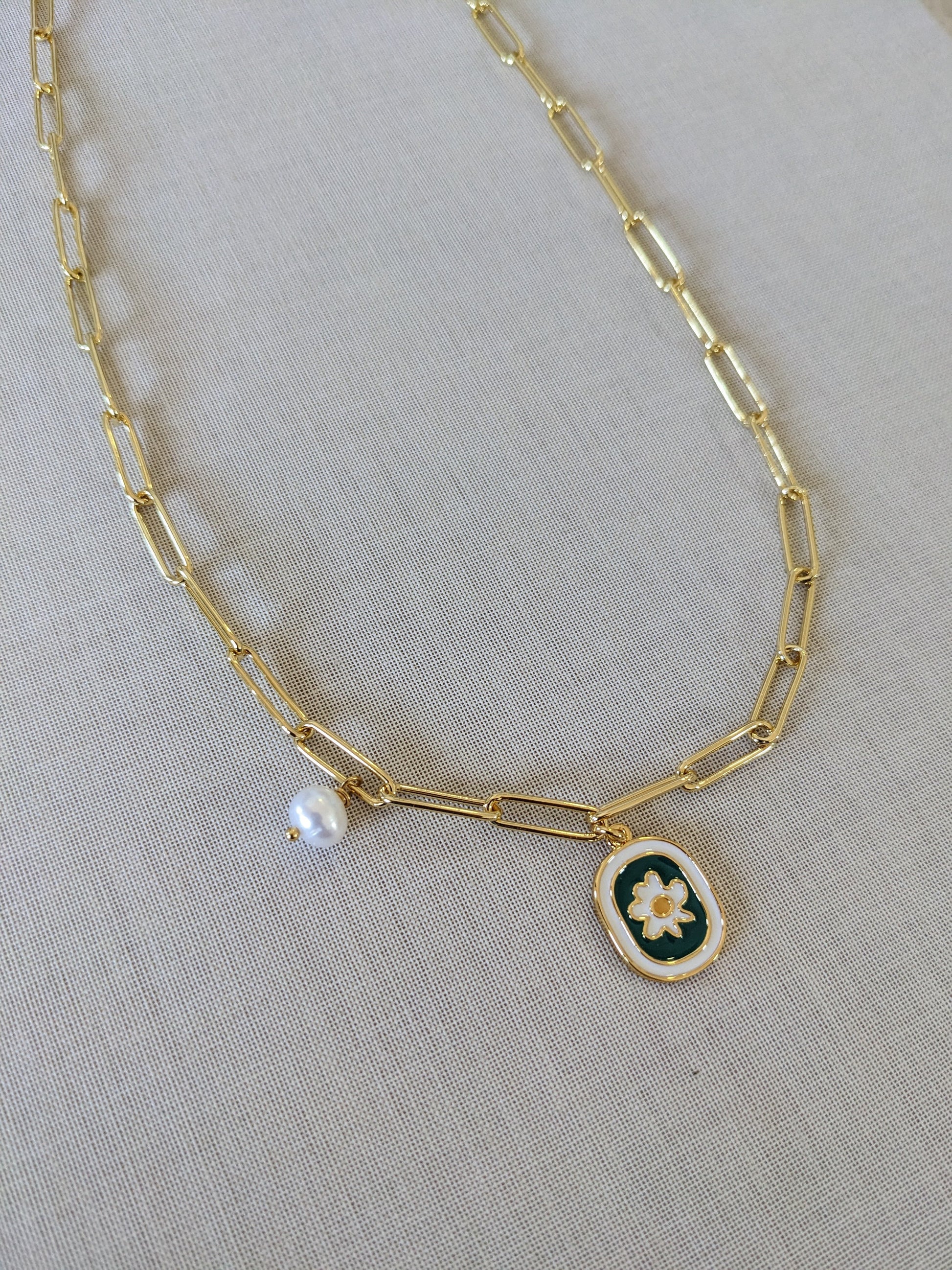 The Rory Link Luxe Necklace by Kitsense is a part of the Luxe Edit Collection 0.6. This necklace features a chain link, flower design & fresh water pearl.Spoil yourself or a friend with this flawless gift.