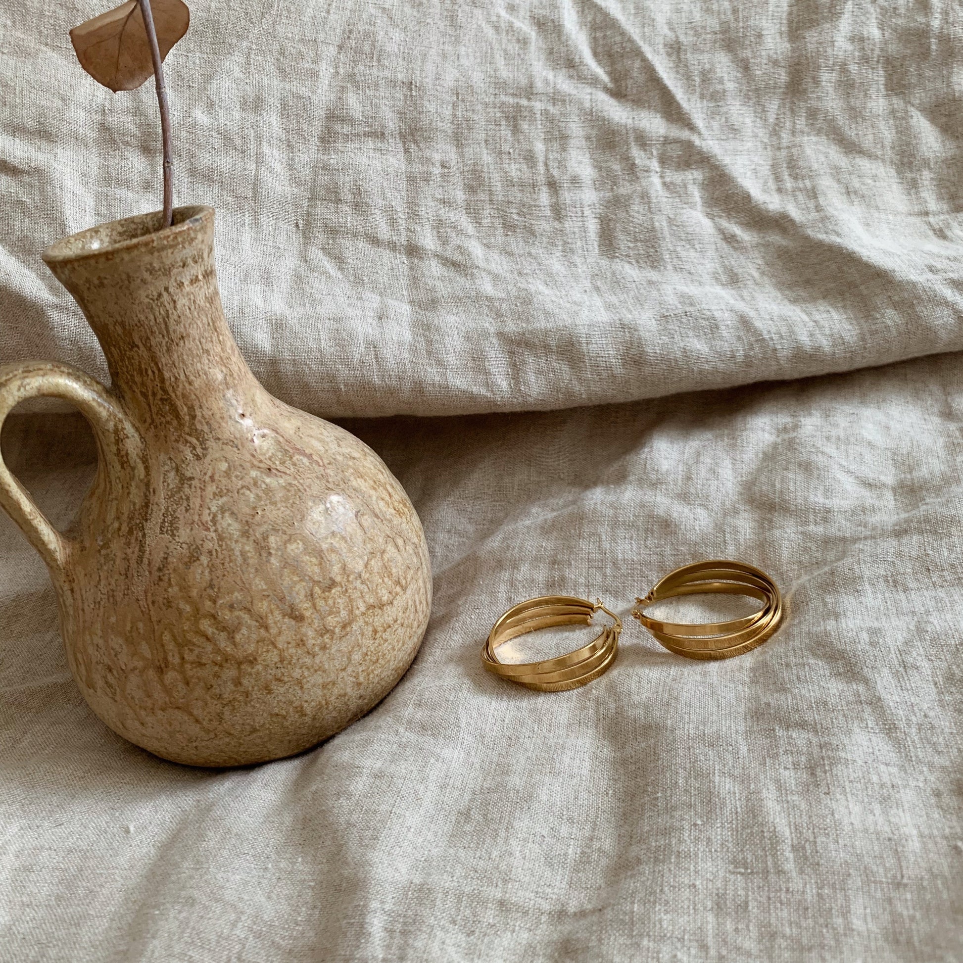The Saturn crossed hoops by Kitsense are an elegant and timeless style that are sure to make you standout. This style features 3 crossed circles that create and gorgeous architectural shape.