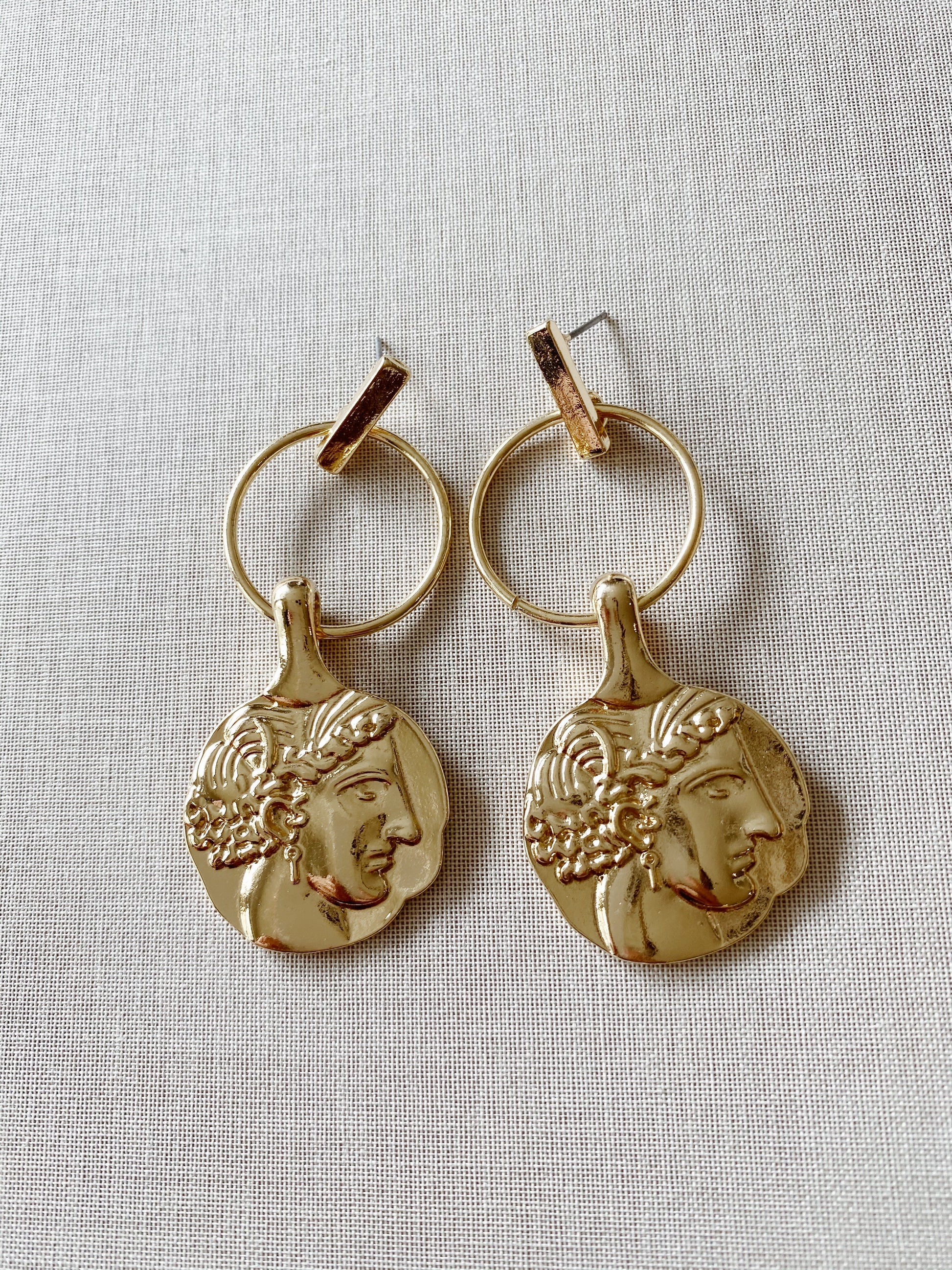 The Spartan Earrings by Kitsense are a part of the Statement Earring collection 0.8. This style features a drop down pendant with a Spartan face detail.