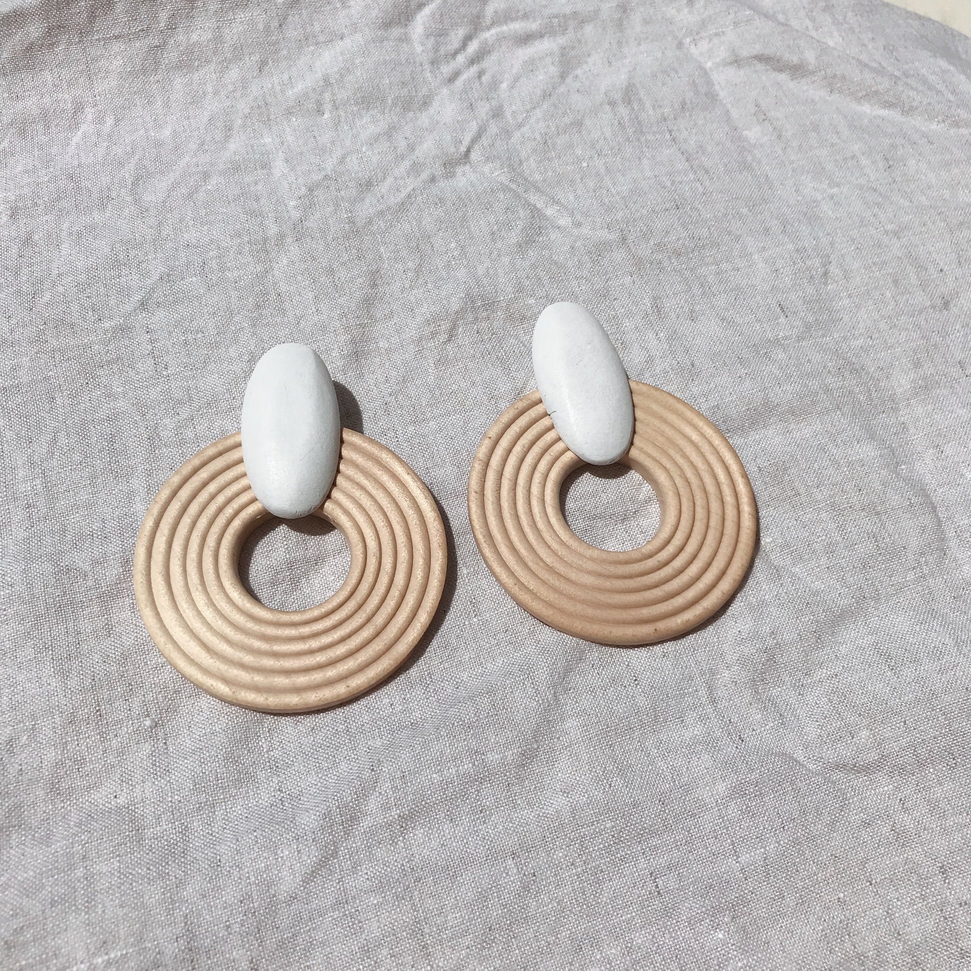 The Theodora Oversize Earrings are part of the resort collection by Kitsense. This oversize statement style is available in White and Beige Colour-ways and is the perfect way to create a bold look.