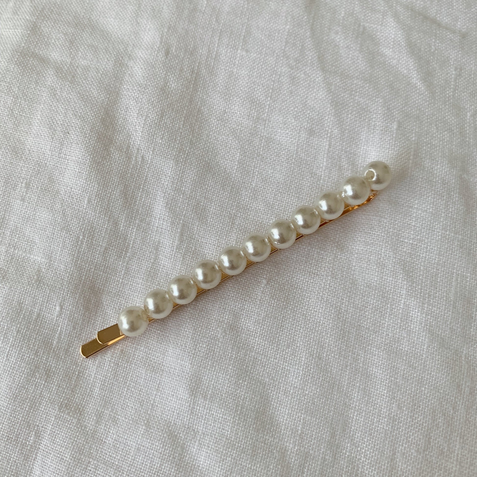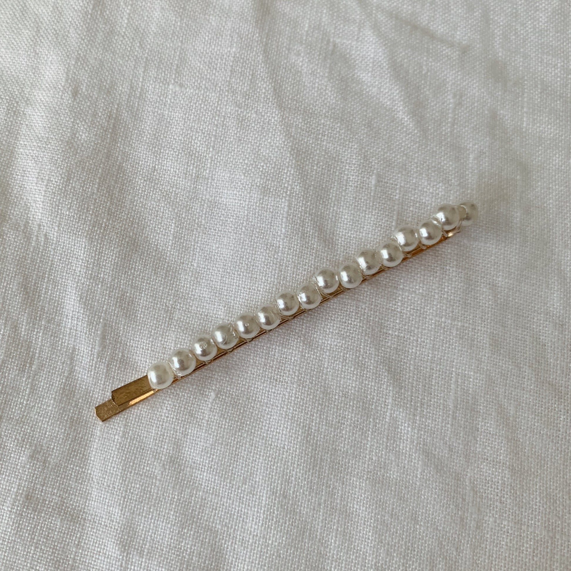 The Tully pearl hair clip by Kitsense is a barette style with pearl detailing.